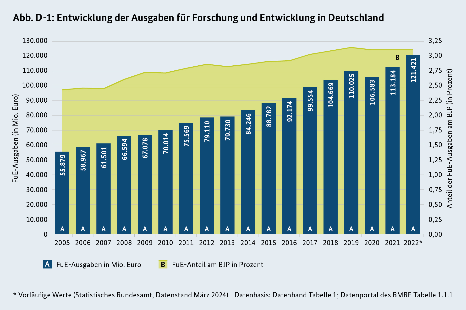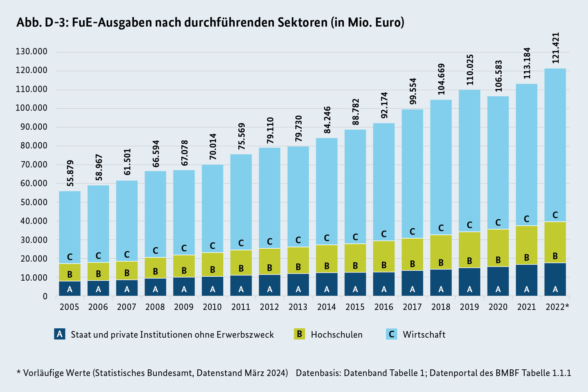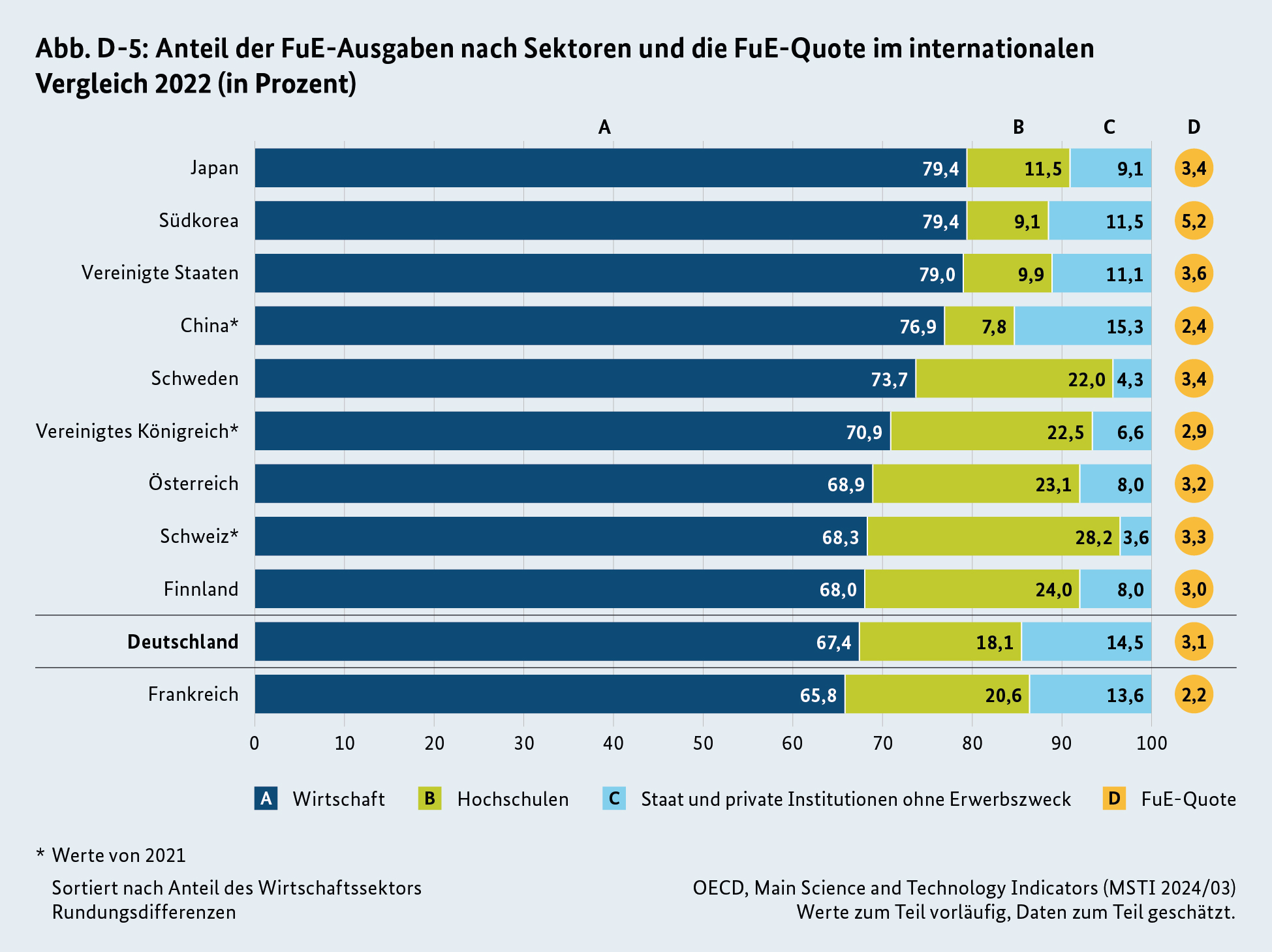 Datenportal des BMBF Tabelle 1.3.1 OECD (Main Science and Technology Indicators 2023/2) und Berechnungen des Deutschen Zentrums für Hochschul- und Wissenschaftsforschung Schlagwörter